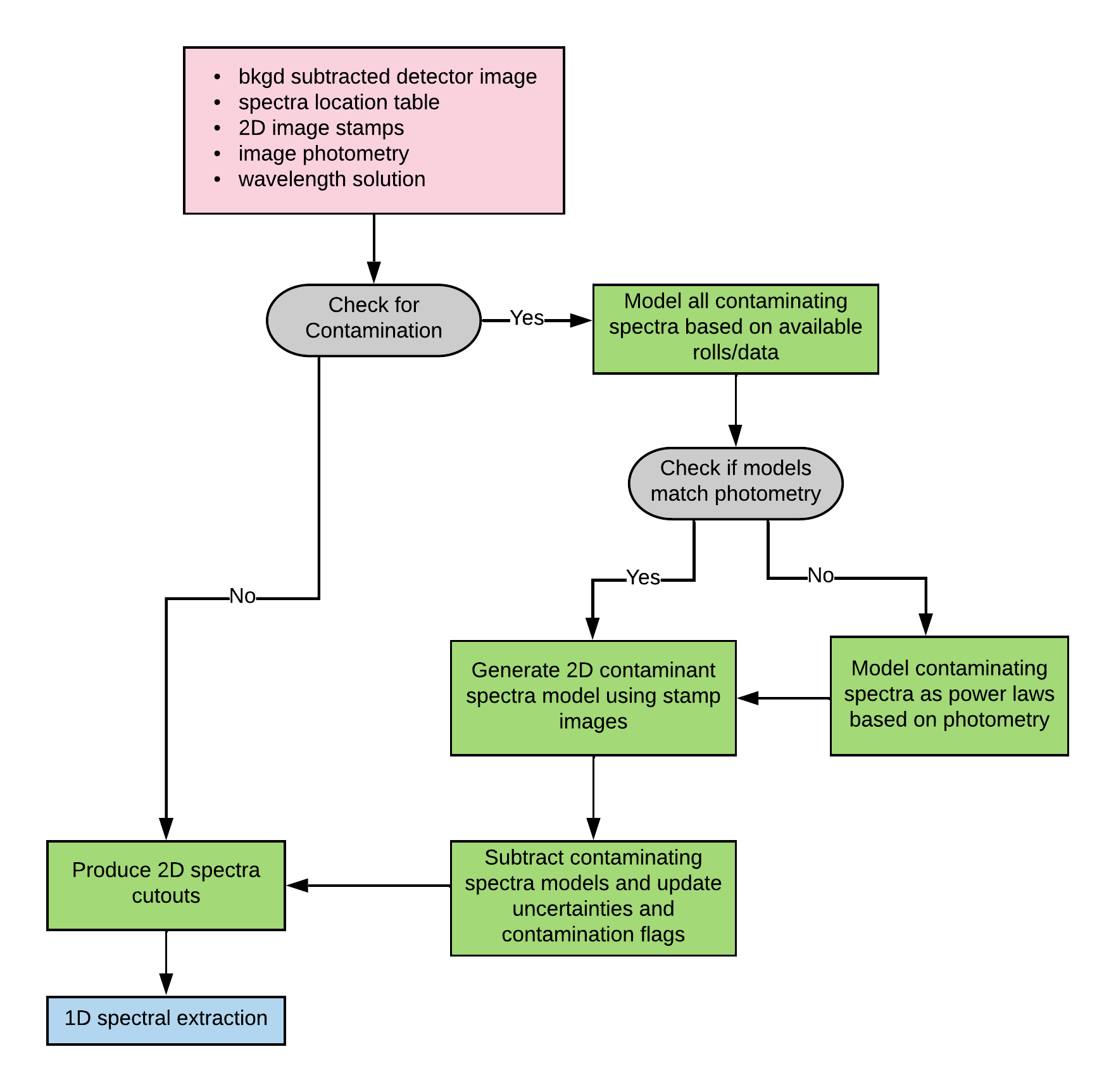 Figure 4: Spectral and imaging data are used to remove contaminating, overlapping spectra for each science target. Output is a clean, 2D spectrum for each detected source.